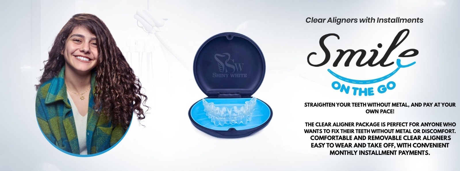 Introduction: For two years, treat your smile without paying a down payment. Payment is for each aligner, and you can stop whenever you want without any restrictions and without losing any money. Treatment that will not interrupt your lifestyle at all.
