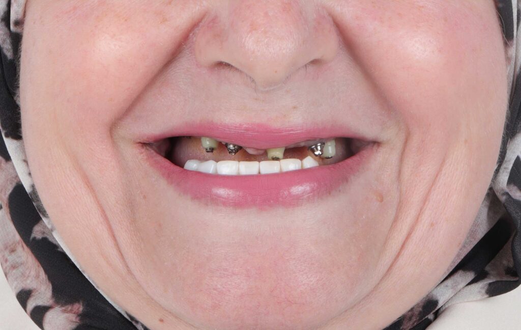 • After 15 days (of the 3-month checkup): 9 visits within 21 days to a month for the preparation of the titanium frameworks covered with zirconia restorations.